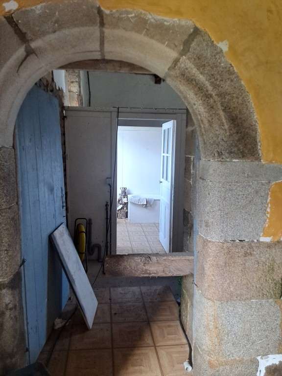 Rez-de-chaussée vue sur la porte cintrée en granit de taille, détail : Bâti de porte, élément défensif pour barrer la porteImmatriculation