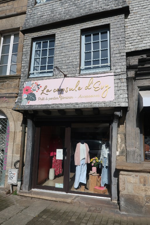 L'essentage d'ardoise masque la structure en pan de bois.Immatriculation