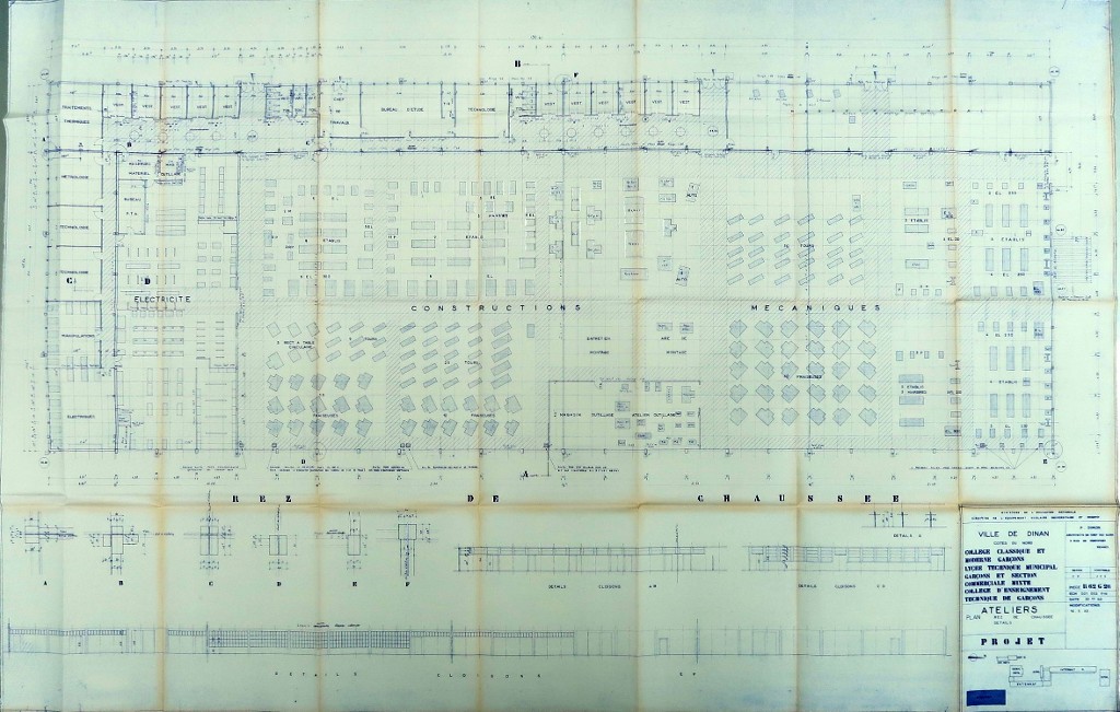 Plan des ateliers et détails des cloisons. Patrice Simon, architecte, 1962.Immatriculation