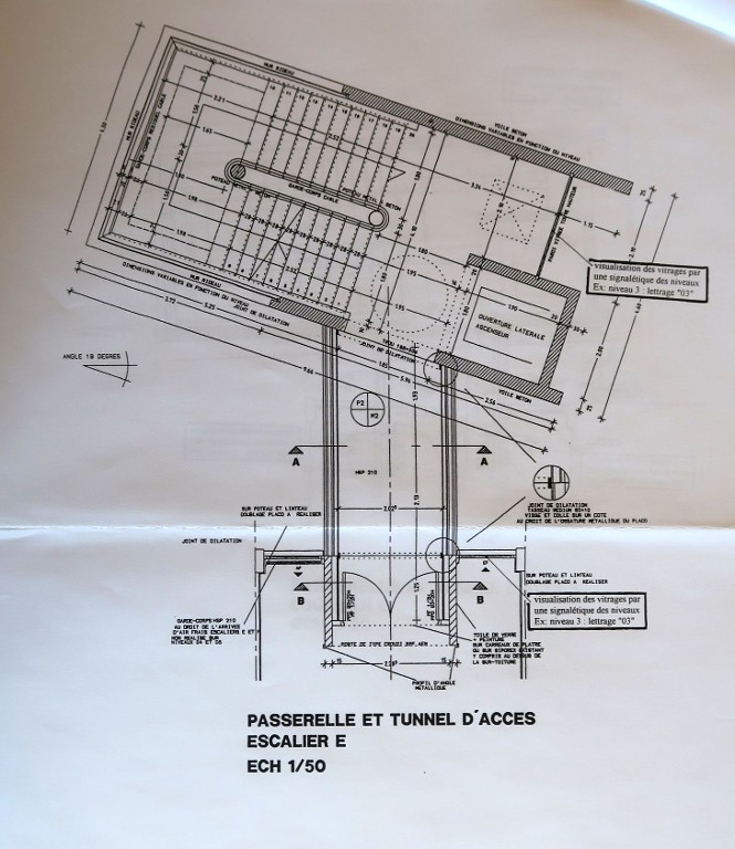 Plan de détail de l'escalier E et du tunnel d'accès, avant-projet détaillé. Plan de masse et situation. Architecture plurielle (Thierry Soquet), architecte, 2003.Immatriculation