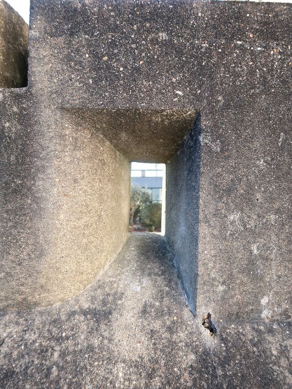 Émile Gilioli, sculpture en béton, 1963. Détail.Immatriculation