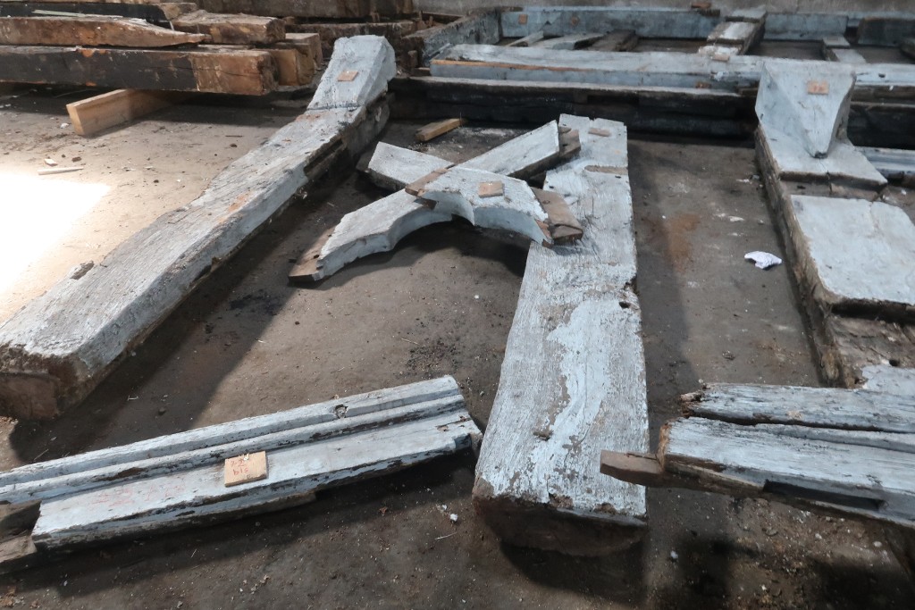 Eléments composant une porte trilobée d'un étage de la façade sud de la maison de Saint-Dinan, déposés après son incendie en 2019.Immatriculation