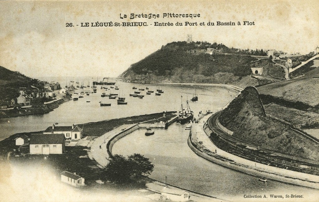 Carte postale, Le Légué-Saint-Brieuc, entrée du port et du bassin (Collection A.Waron, Saint-Brieuc) : déroctage visible de la falaise à droite de l'imageImmatriculation