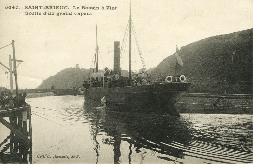 Carte postale. Le bassin à flot, sortie d'un grand vapeur. Ed. HamonicImmatriculation