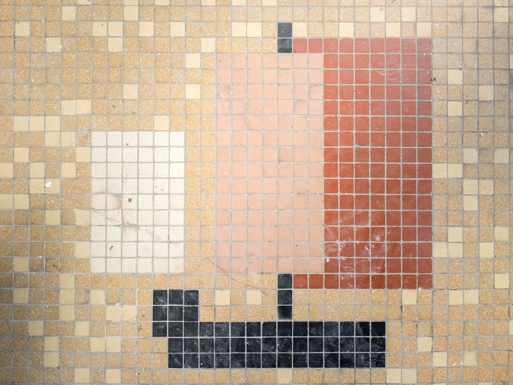Mosaïque de carreaux de ciment représentant un bateau à voileImmatriculation