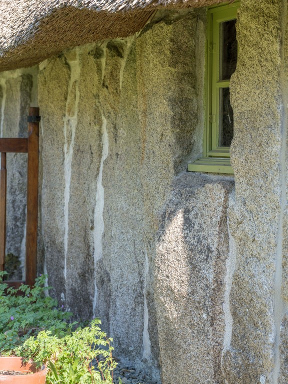 Vue de détail de l'élévation postérieure et d'une ouverture.Immatriculation