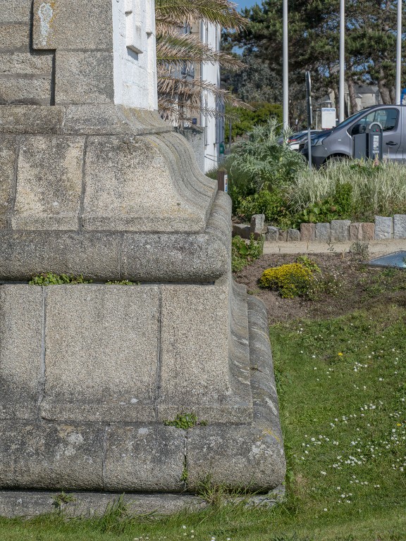 Soubassement carré du phare : mise en oeuvre du granite, corniche en doucineImmatriculation