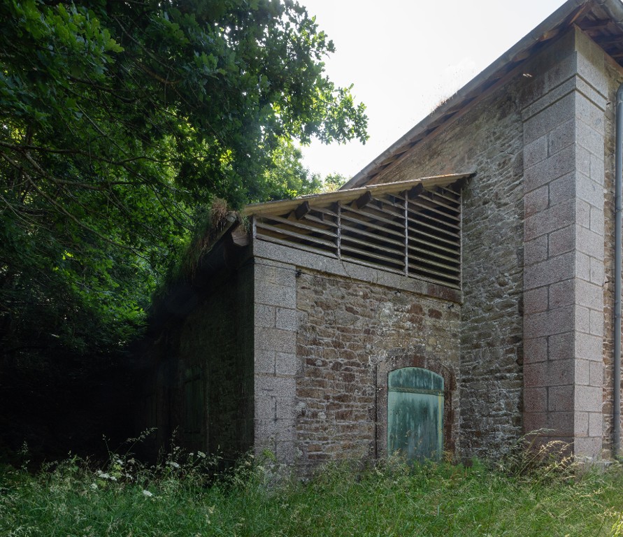 Vue de détail de la poudrière n° 3 (P3) de la vallée de Kerhuon : sas d'entrée nord (état en 2025). Le sas a ultérieurement été couvert en appentisImmatriculation