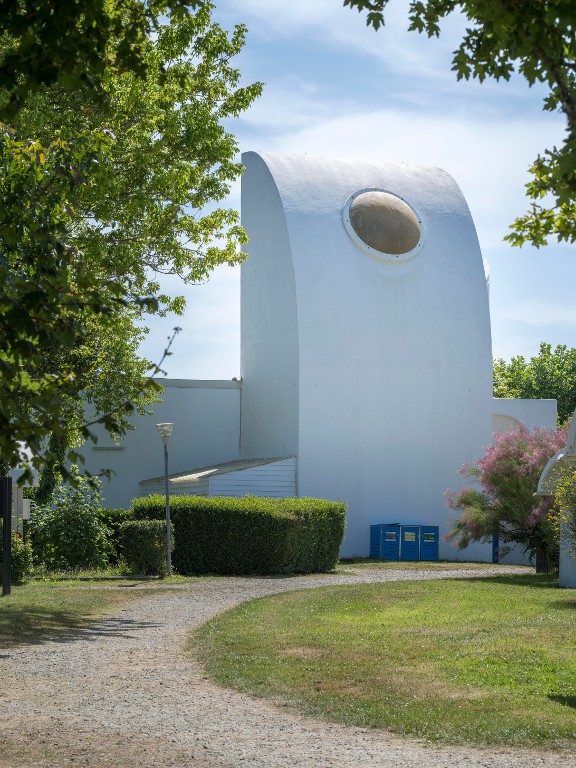 Haut de quatorze mètres, le méditorium (aujourd'hui réserve scénique) invite au recueillement et à l'élévation spirituelle des vacanciers.Immatriculation