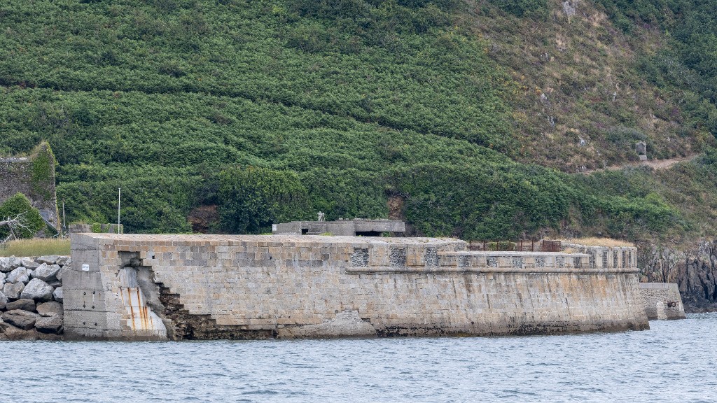 Vue de la batterie basse du fort du Mengant depuis la mer (état en 2025)Immatriculation