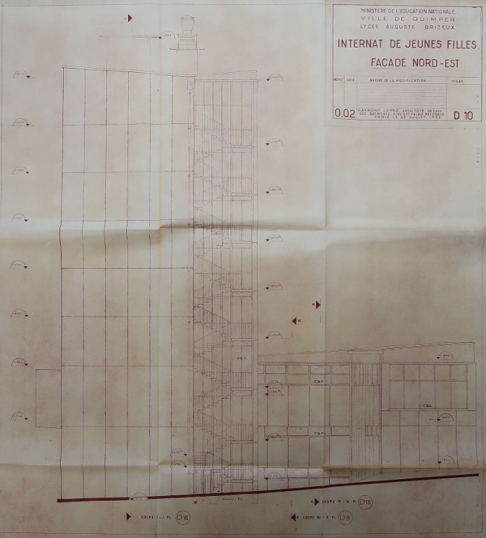 Internat de jeunes filles. Façade nord-est. Raymond Lopez, architecte, 1952.Immatriculation