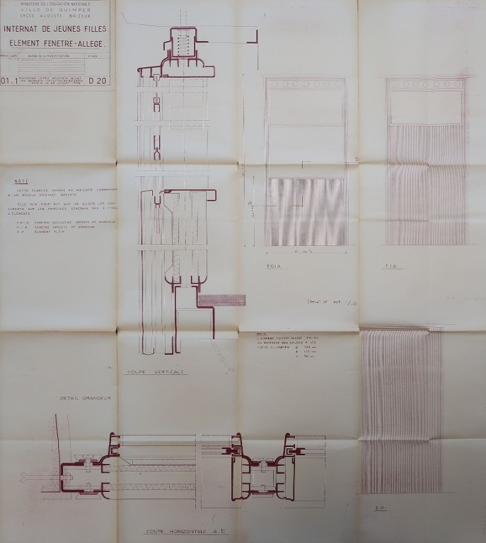 Internat de jeunes filles. Elément fenêtre allège. Raymond Lopez, architecte, 1952.Immatriculation