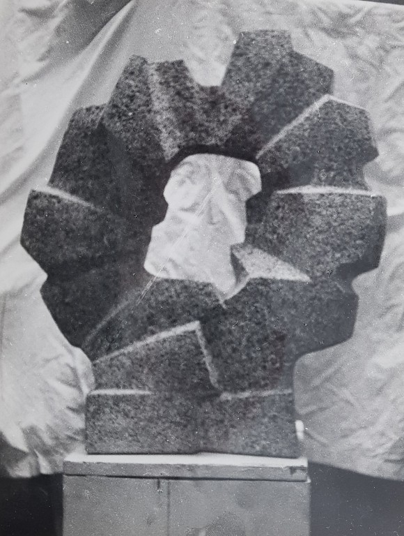 Maquette (1976) pour la sculture "Soleil" de Simone Boisecq.Immatriculation