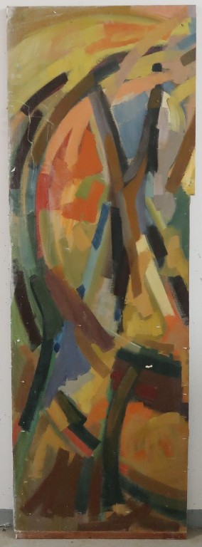 Jean-Claude Carsuzan, "Les saisons" peinture murale sur panneau de bois, 1969. Vue d'ensemble du panneau 1/7 de l'une des deux parties.Immatriculation