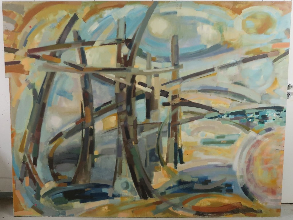 Jean-Claude Carsuzan, "Les saisons" peinture murale sur panneau de bois, 1969. Vue d'ensemble du panneau 6/7 de l'une des deux parties.Immatriculation