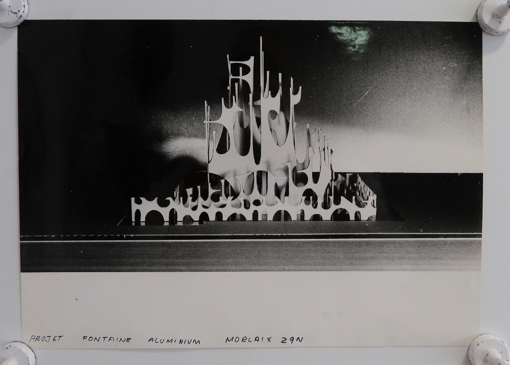 Georges Delahaie, maquette d'une "Fontaine en aluminium anodisé", évocation de la Cité D'Ys (projet refusé le 17 juillet 1974).Immatriculation
