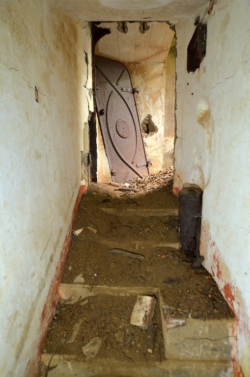 Vue intérieure de la soute à munition de la quatrième pièce de 164 mm des Rospects (Plougonvelin, front de mer de Brest)Immatriculation
