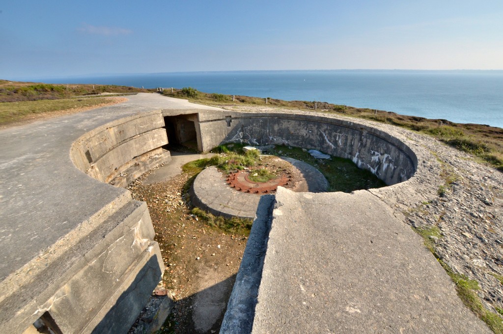 Vue de l'emplacement de la deuxième pièce de 164 mm de la batterie du Cap de la Chèvre (Crozon, front de mer de Brest)Immatriculation