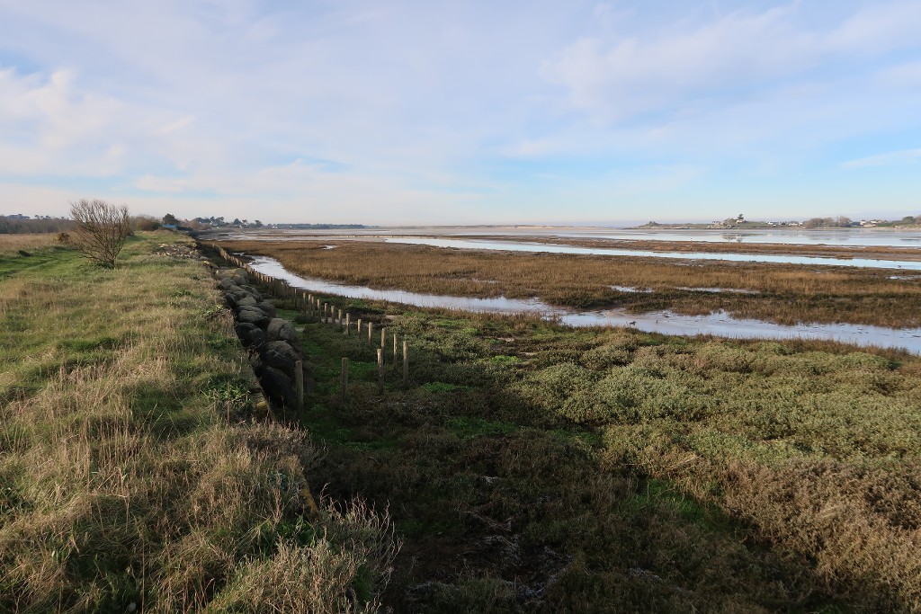 Vue générale de la digue Michel. A droite, l'anse du Kernic à marée basseImmatriculation