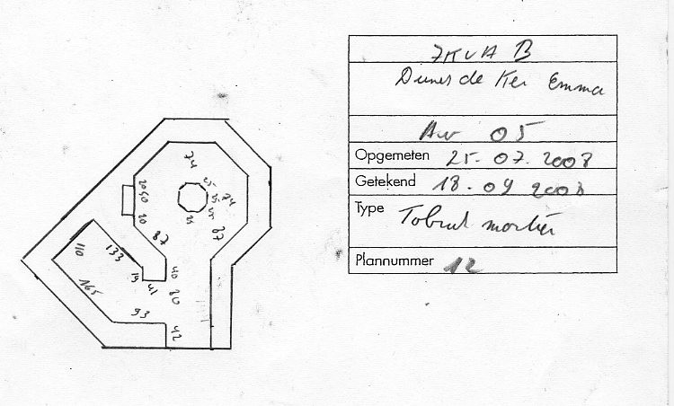 Plan du bunker-poste d'observation et de tir pour mortier dit Tobruk-Stand (dessin : Dirk Peeters)Immatriculation