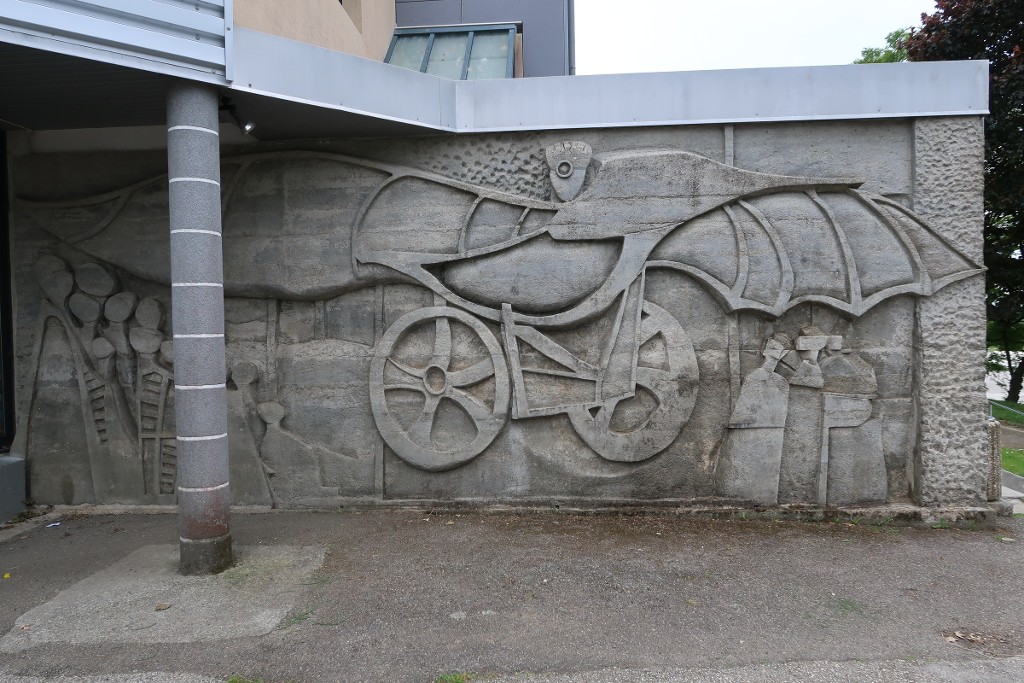 Vue d'ensemble du bas-relief de Gaëlle Sénéca (1976).Immatriculation