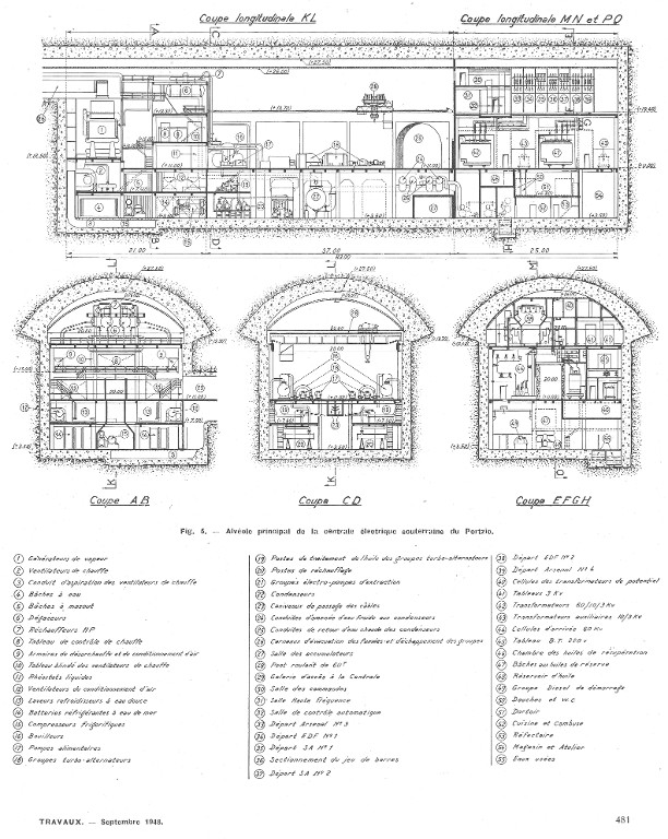 PAVIN, Alain. "La centrale électrique souterraine du Portzic près de Brest". Paris : éditions science et industrie, Travaux : organe de la technique française des travaux publics et du ciment armé, n° 167, septembre 1948.