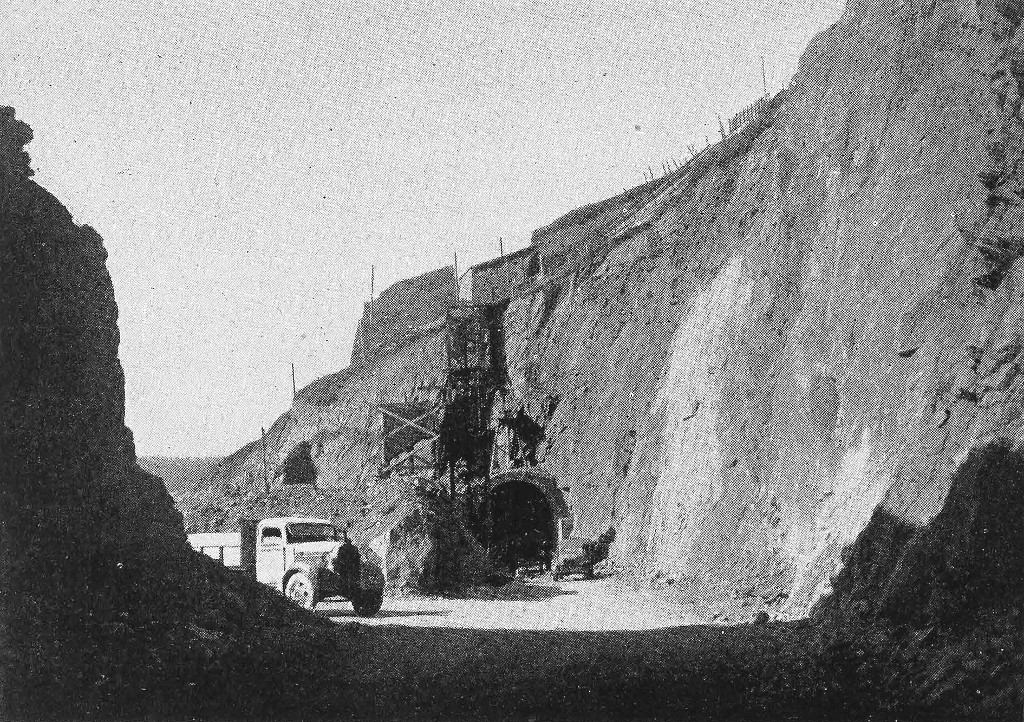 Vue de l'entrée du souterrain en mars 1948 depuis la route d'accèsImmatriculation