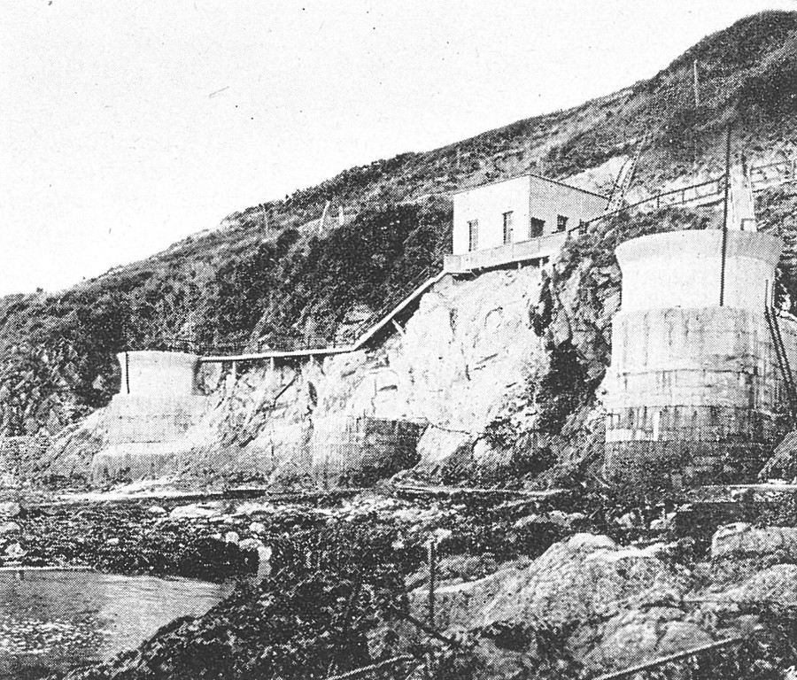 Vue de l'ouvrage de prise d'eau de mer depuis la grève, novembre 1953Immatriculation