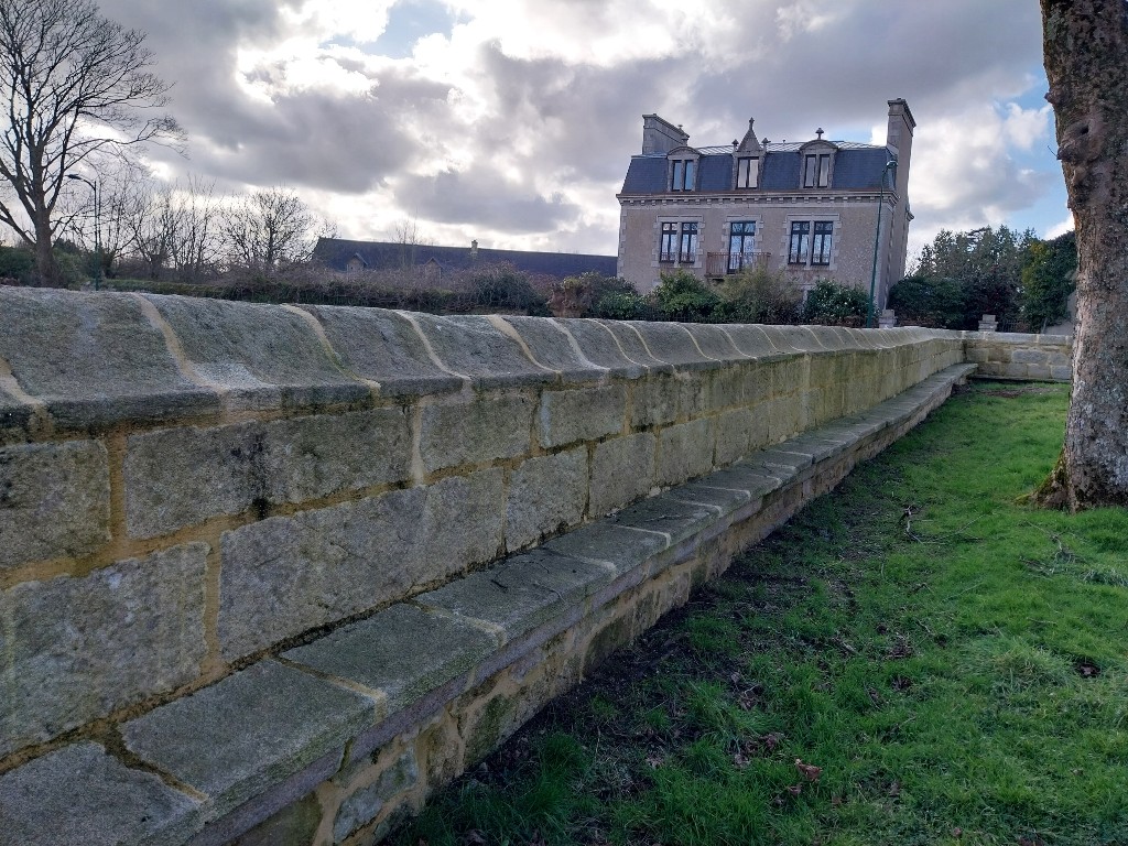 Mur de clôture avec banc en pierreImmatriculation