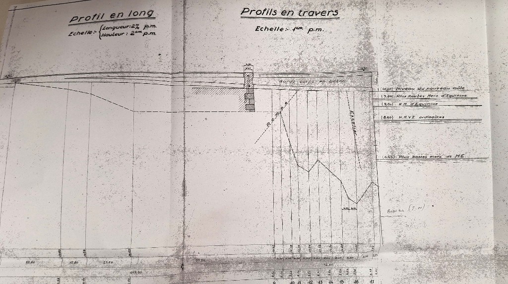 Coupe, profils de l'ouvrage de Pen ar Vil, juillet 1947Immatriculation