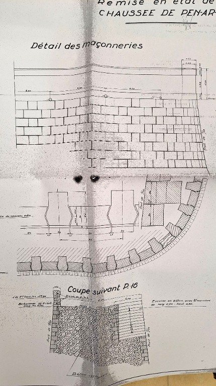 Profil en long de l'extrémité de l'ouvrage de Pen ar Vil : détail des maçonneries, juillet 1947Immatriculation