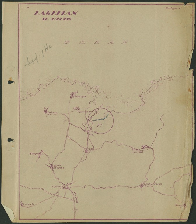 Dossier allemand de minage, commune de Tréflez, champ de mines Elorn II/17 : plan de situation, mars 1943-