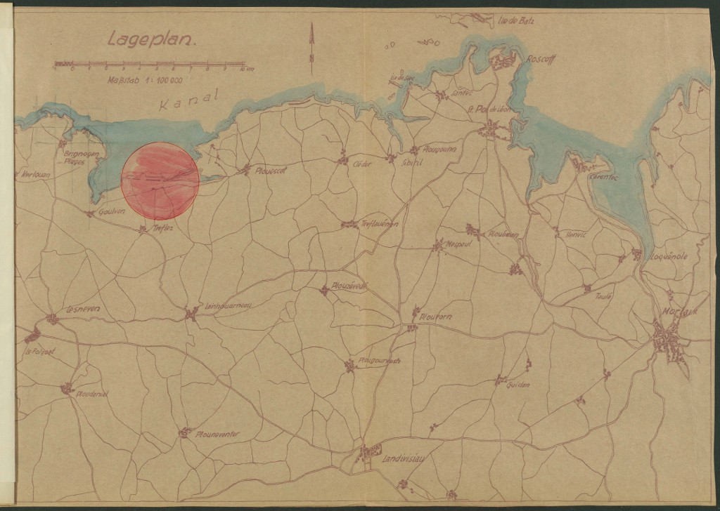 Dossier allemand de minage, communes de Tréflez et de Plounévez-Lochrist, champ de mines Elorn II/30 : plan de situation, octobre 1942-