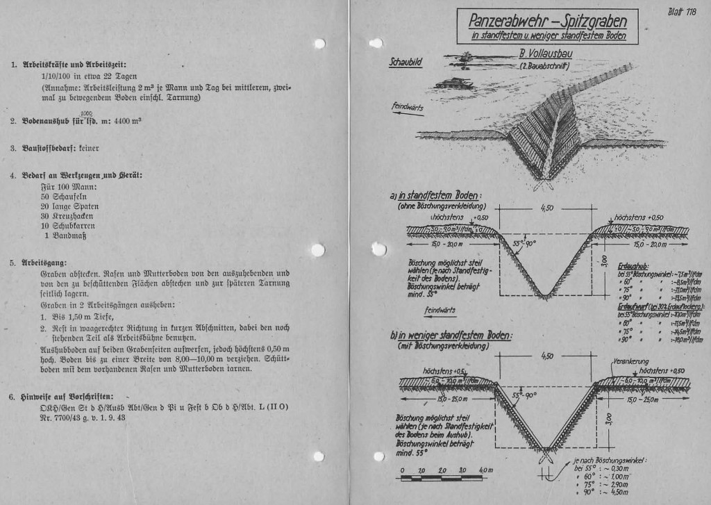 Profil d'obstacle antichar - fossé en V (source : Bundesarchiv, RH 11-III/755, Bildheft Neuzeitlicher Stellungsbau, 1er juin 1944, planche 118)Immatriculation