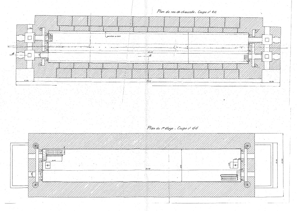 Plan d'une poudrière de la vallée de Kerhuon, signé de l'ingénieur en chef Fille, commandant de la Pyrotechnie, 5 décembre 1940 : rez-de-chaussée et étageImmatriculation