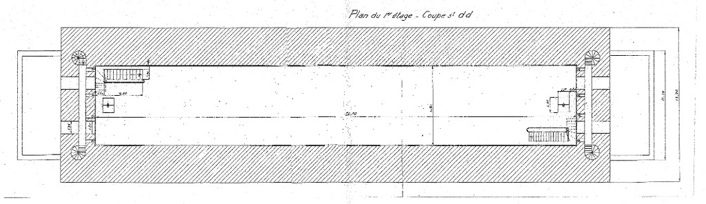 Plan d'une poudrière de la vallée de Kerhuon, signé de l'ingénieur en chef Fille, commandant de la Pyrotechnie, 5 décembre 1940 : étageImmatriculation