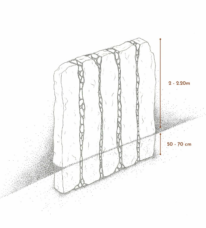 Schéma explicatif de l'élévation d'un mur en orthostate.Immatriculation
