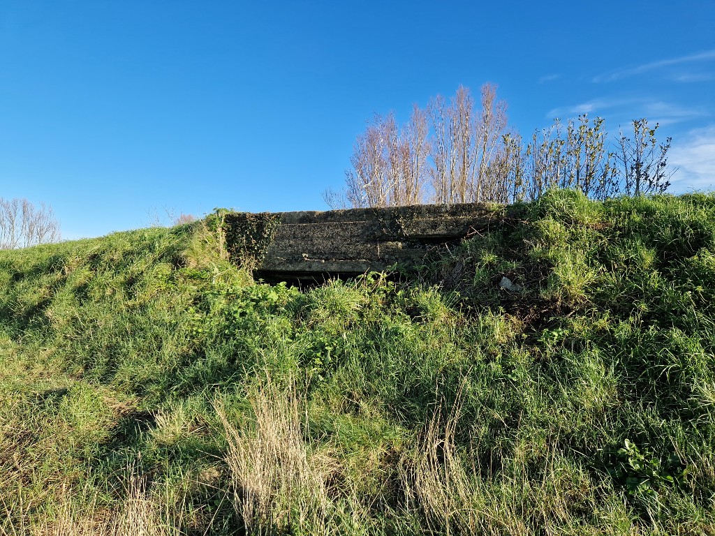 Vue générale (côté embrasure). Le bunker est intégré dans la digue de LannévezImmatriculation
