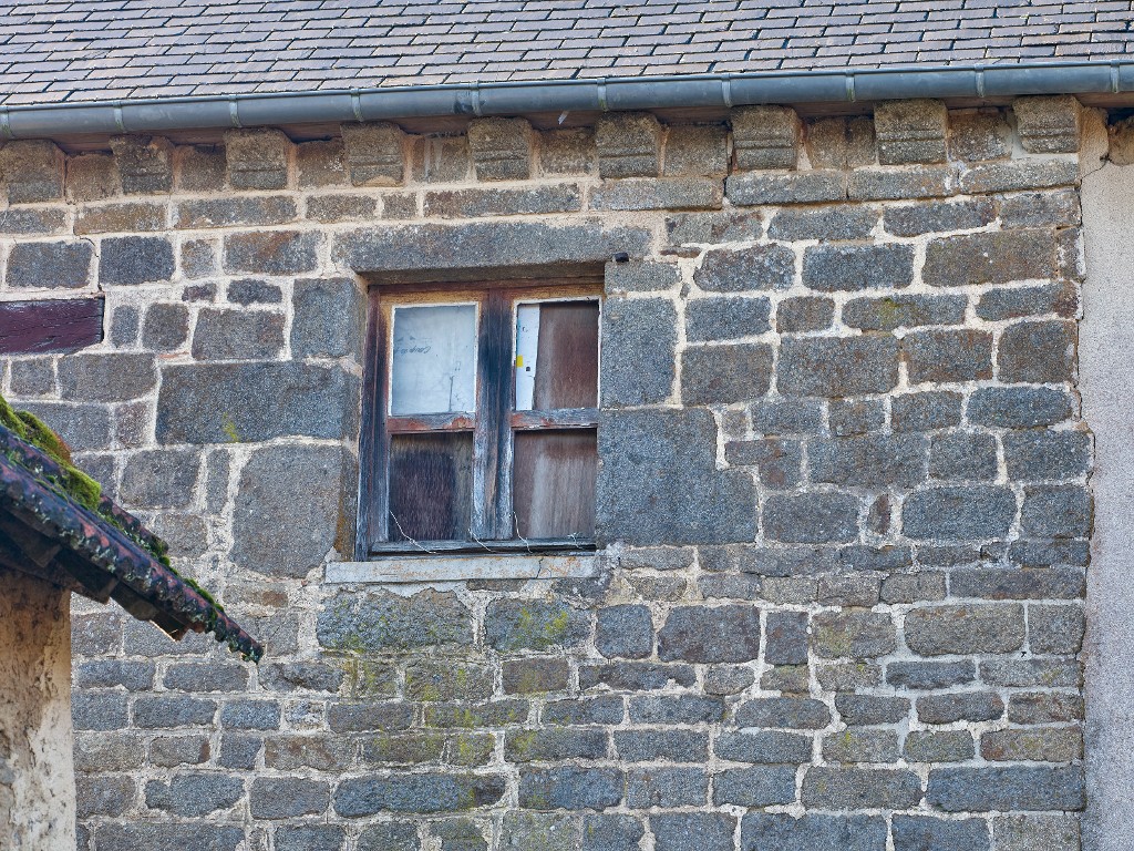 Logis sud. Façade est. Fenêtre de l'étage et corniche en pierre à modillonsImmatriculation