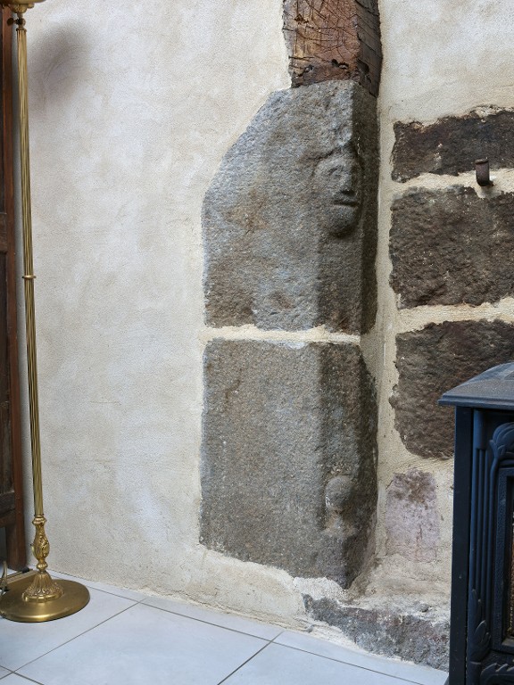 Logis nord. Cheminée sur le mur de refend. Jambage orné d'une tête et d'une bouleImmatriculation