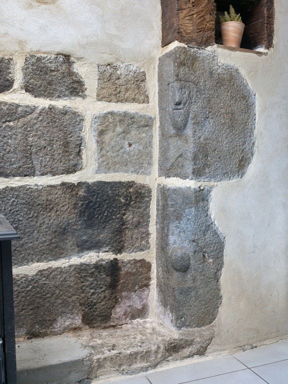 Logis nord. Cheminée sur le mur de refend. Jambage orné d'une tête et d'une bouleImmatriculation