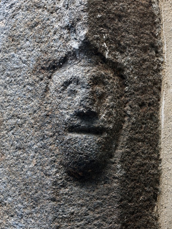 Logis nord. Cheminée sur le mur de refend. Détail d'un jambage : tête sculptée sur la partie supérieureImmatriculation
