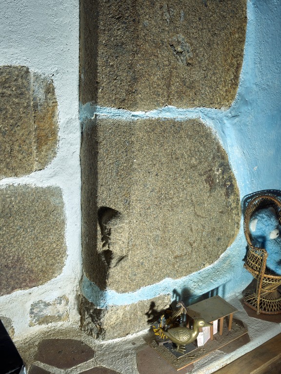 Logis secondaire. Etage. Cheminée sur le mur de refend. Détail d'un jambage avec tête sculptée sur la partie inférieureImmatriculation