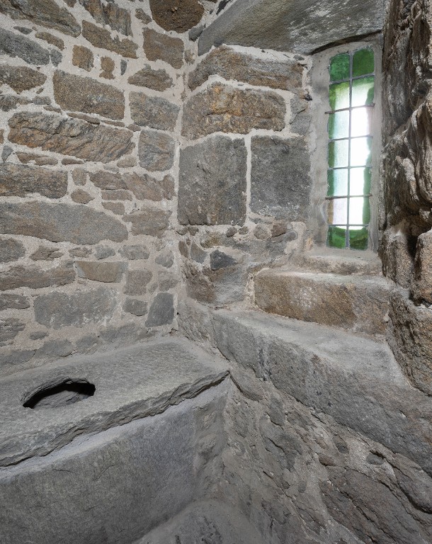 Vue intérieure de la tour Solidor : premier étage, tour ouest, latrines. Elles sont éclairées par une arbalétrière orientée vers le sudImmatriculation