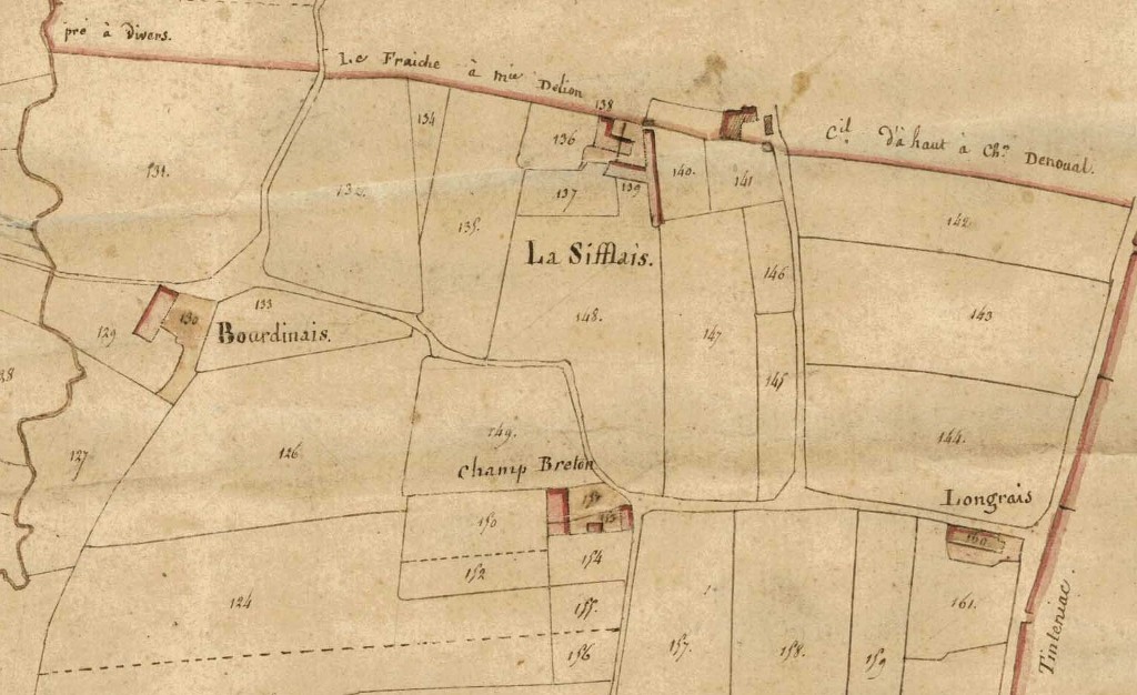 Champ Breton en 1825. Extrait du cadastre ancien, 1ère feuille (Archives départementales d'Ille-et-Vilaine, série 3 P)Immatriculation