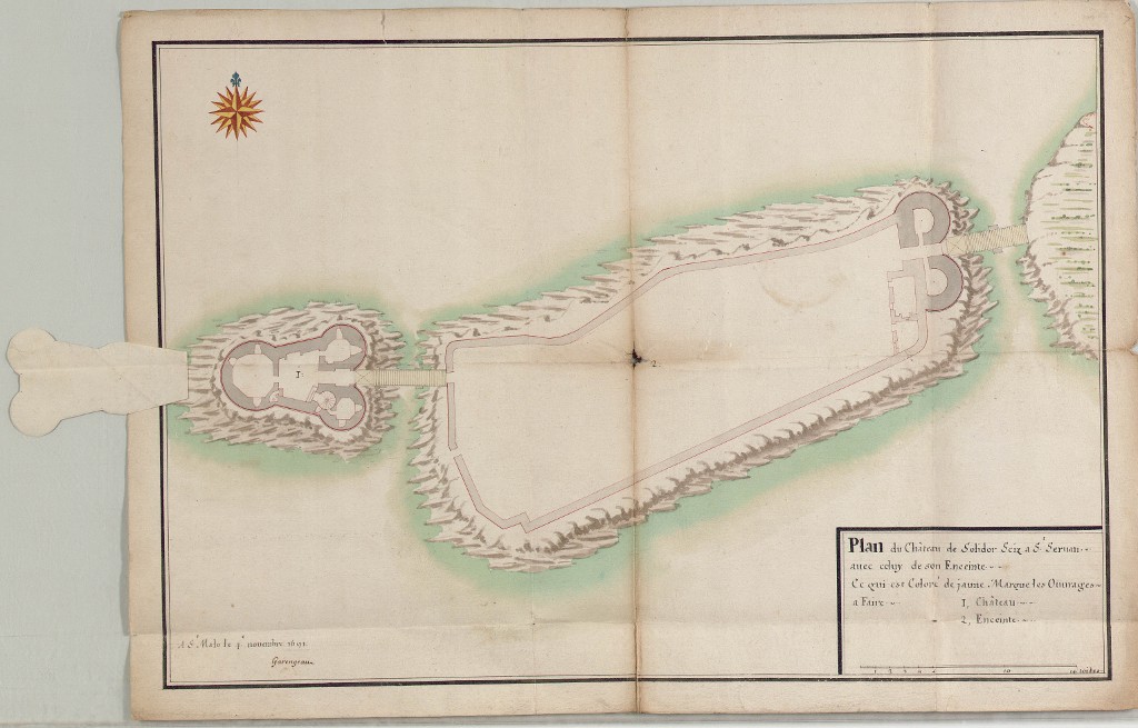 Plan du rez-de-chaussée de la Tour Solidor et de son ouvrage avancé par l'ingénieur Garengeau, 4 novembre 1691Immatriculation