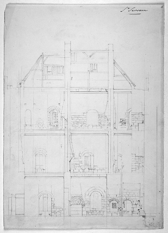 Coupe longitudinale de la Tour Solidor par Alfred Ramé.