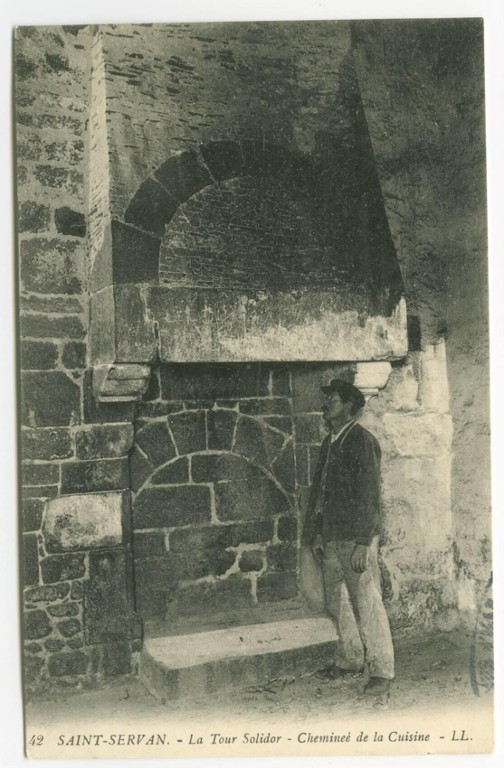 Vue intérieure de la tour Solidor : deuxième étage, tour ouest, cheminée, carte postale (LL)Immatriculation