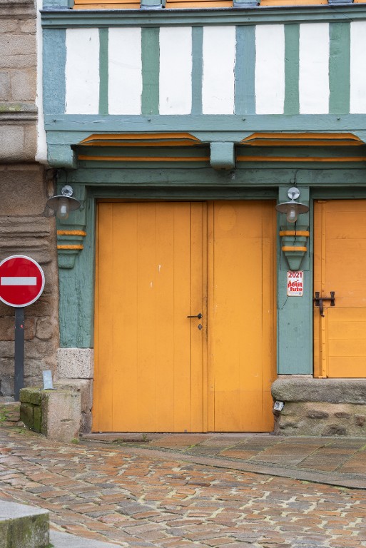 La porte actuelle est plus large que celle d'origine, comme en témoigne la mortaise orpheline sous l'about de solive.Immatriculation
