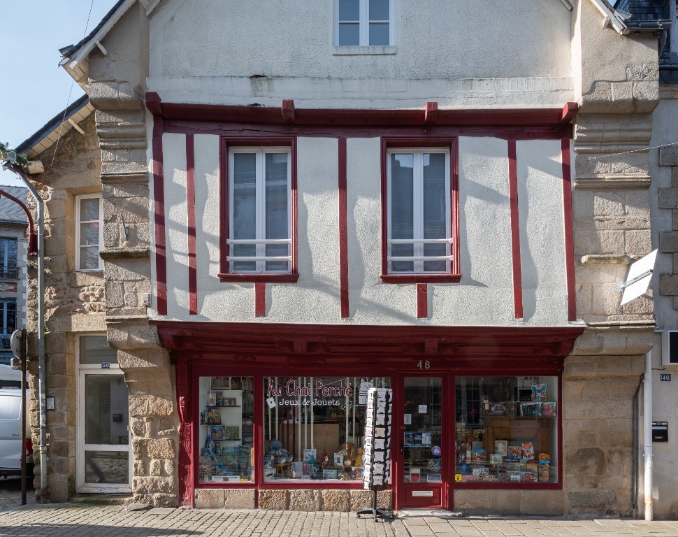 Fruit de plusieurs remaniements, cette façade en pan de bois est encadrée par deux murs à ressauts.Immatriculation